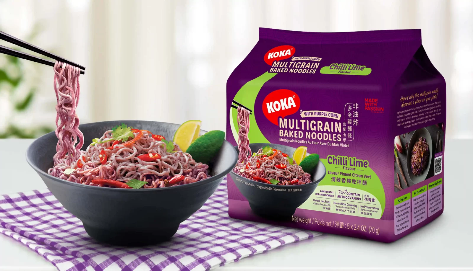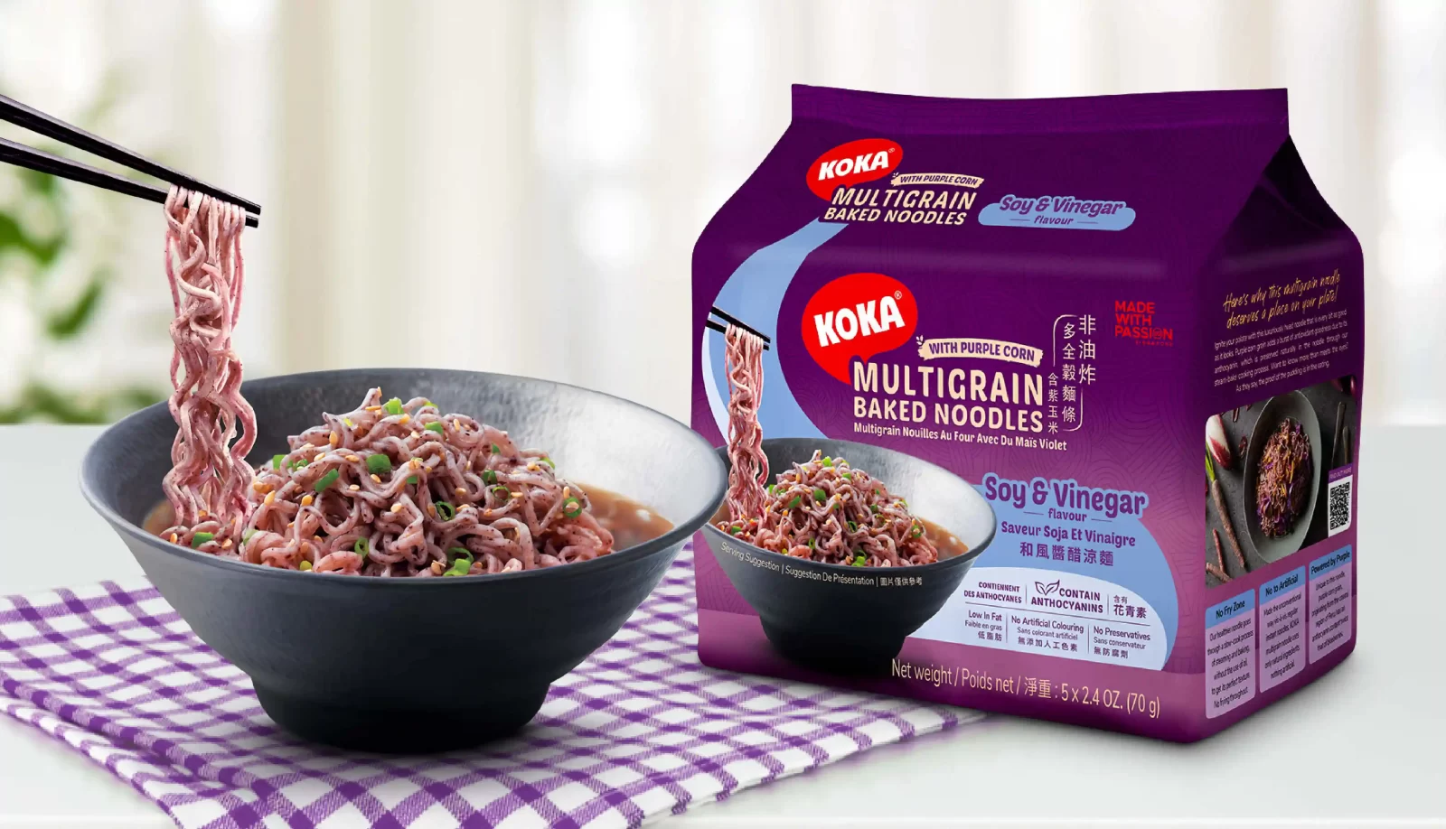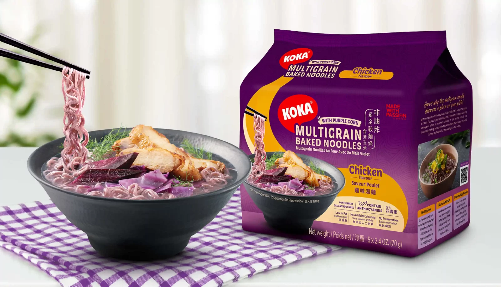 Gram for gram, KOKA Multigrain Purple Corn noodles give you 3 times more antioxidants than red grapes. These antioxidants, known as Anthocyanins, come from purple grains and give the noodles its unique hue. But that's not all - they're also 100% steamed and baked, not fried - so they have less fat, and more springy and firm to the bite. They come in flavours as exotic as they are exciting, guaranteed to please even the most discerning and health-conscious of noodle-lovers.