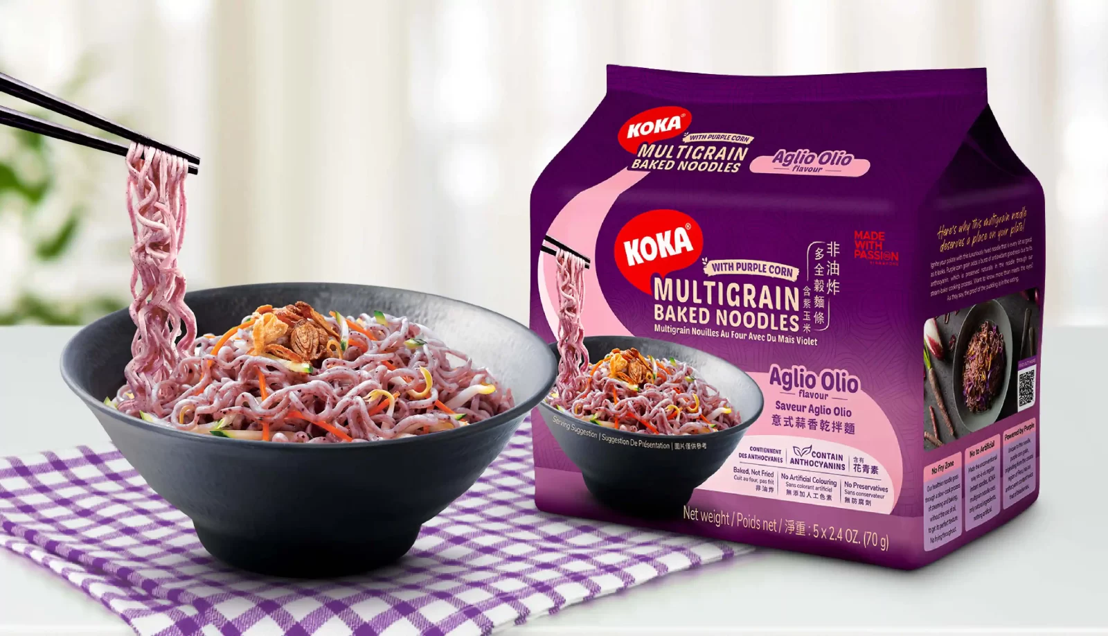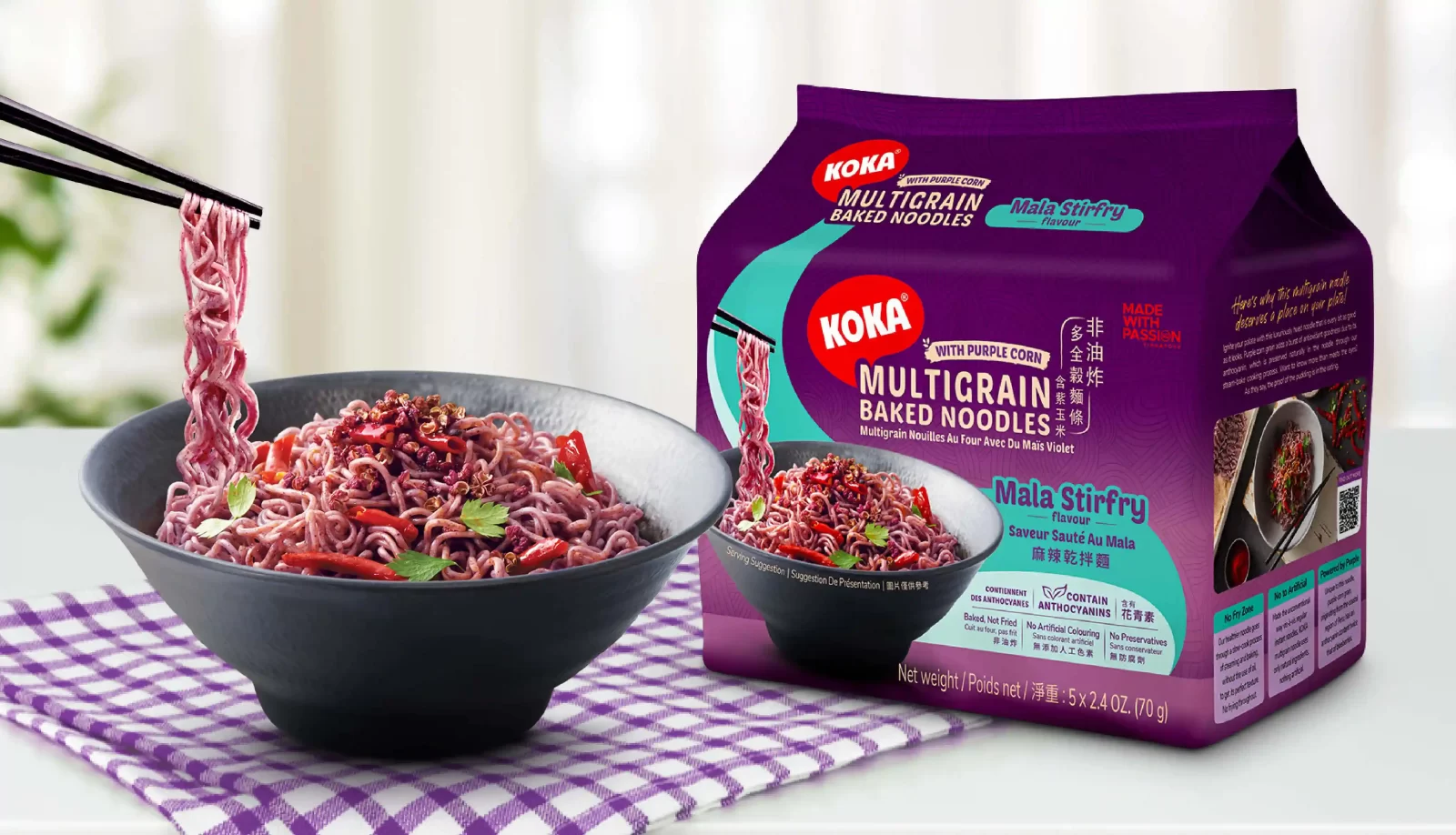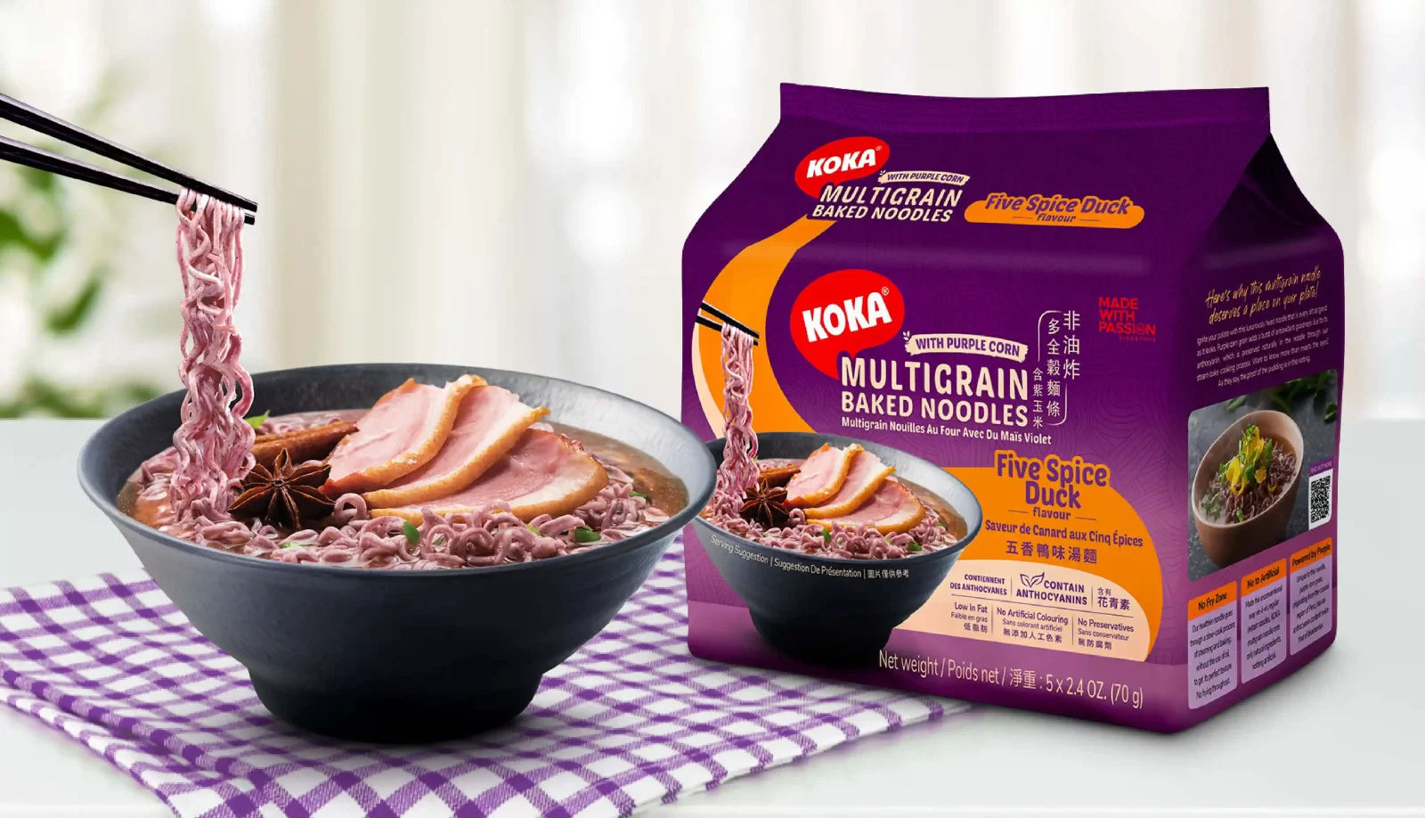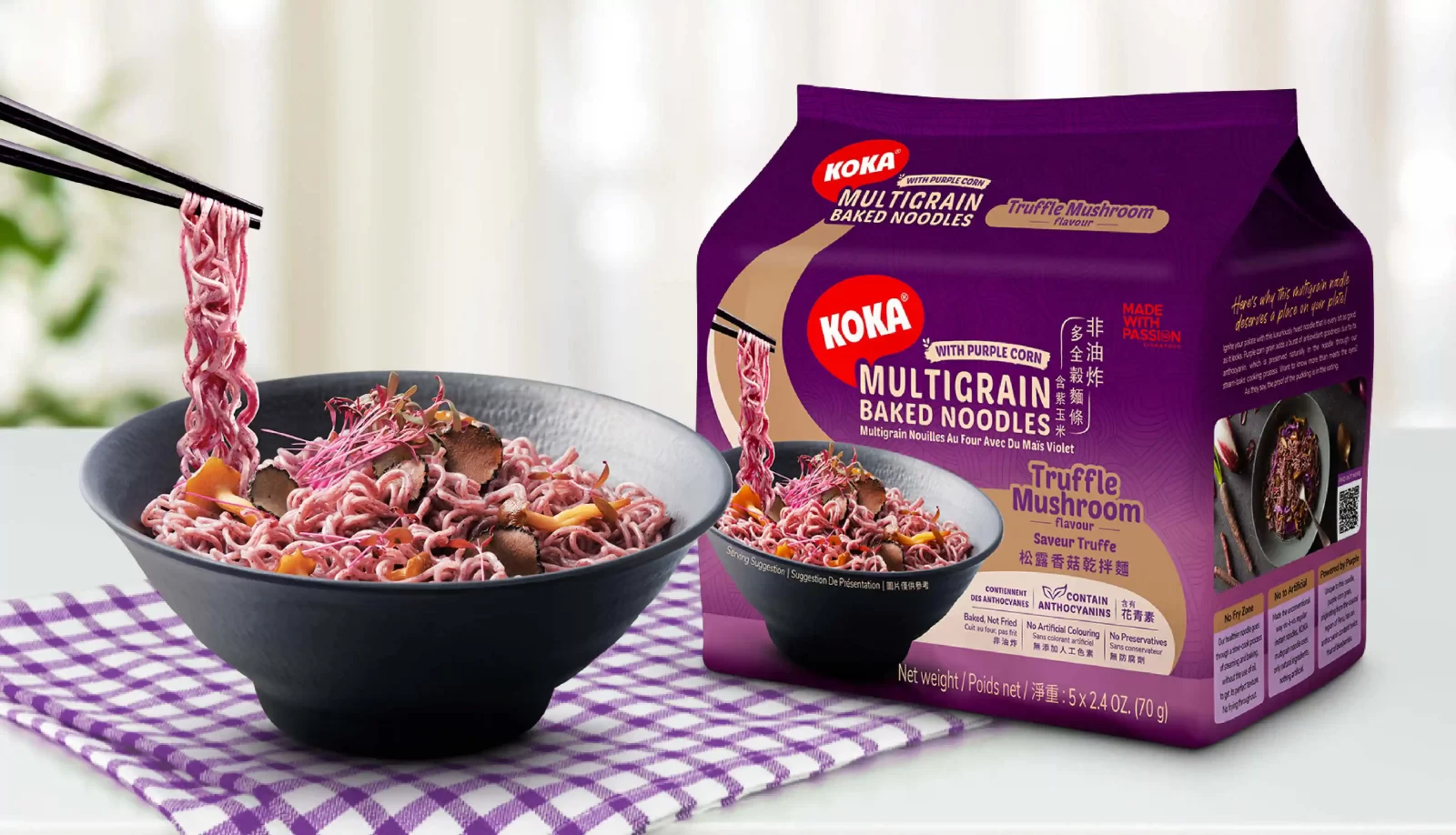Gram for gram, KOKA Multigrain Purple Corn noodles give you 3 times more antioxidants than red grapes. These antioxidants, known as Anthocyanins, come from purple grains and give the noodles its unique hue. But that's not all - they're also 100% steamed and baked, not fried - so they have less fat, and more springy and firm to the bite. They come in flavours as exotic as they are exciting, guaranteed to please even the most discerning and health-conscious of noodle-lovers.